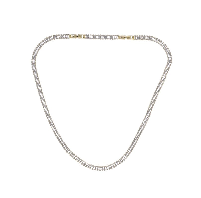 Generic - Stainless Steel Thick Baguette-Cut CZ Tennis Necklace for Women - Gold