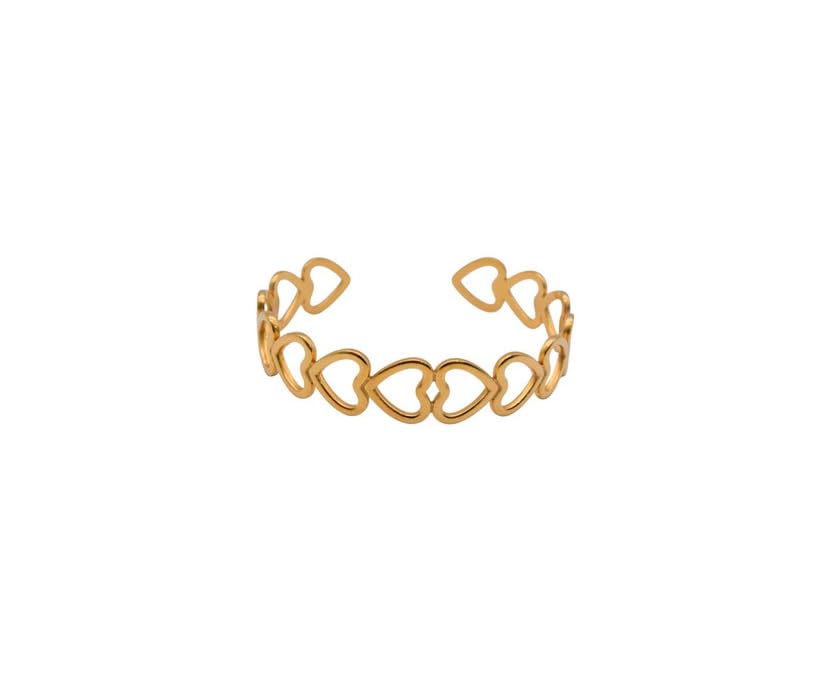 Generic - Stainless Steel Thin Cuff Bracelet With Hearts Designn For Girls - Gold