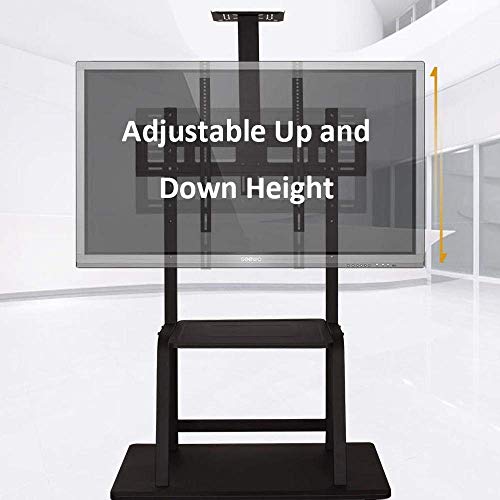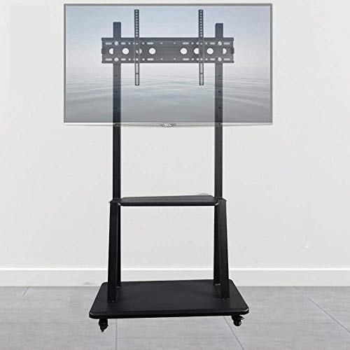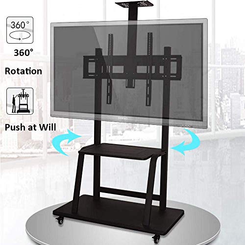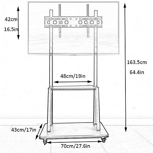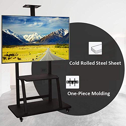 - Heavy duty: The mobile TV stand is strong, thick and not easily damaged thanks to its heavy-duty material. This TV trolley with metal lockable wheels is constructed of solid steel and durable ABS plastic. Especially, the main frame is made of good steel with powder coating. So do the hanging board part and top shelf.