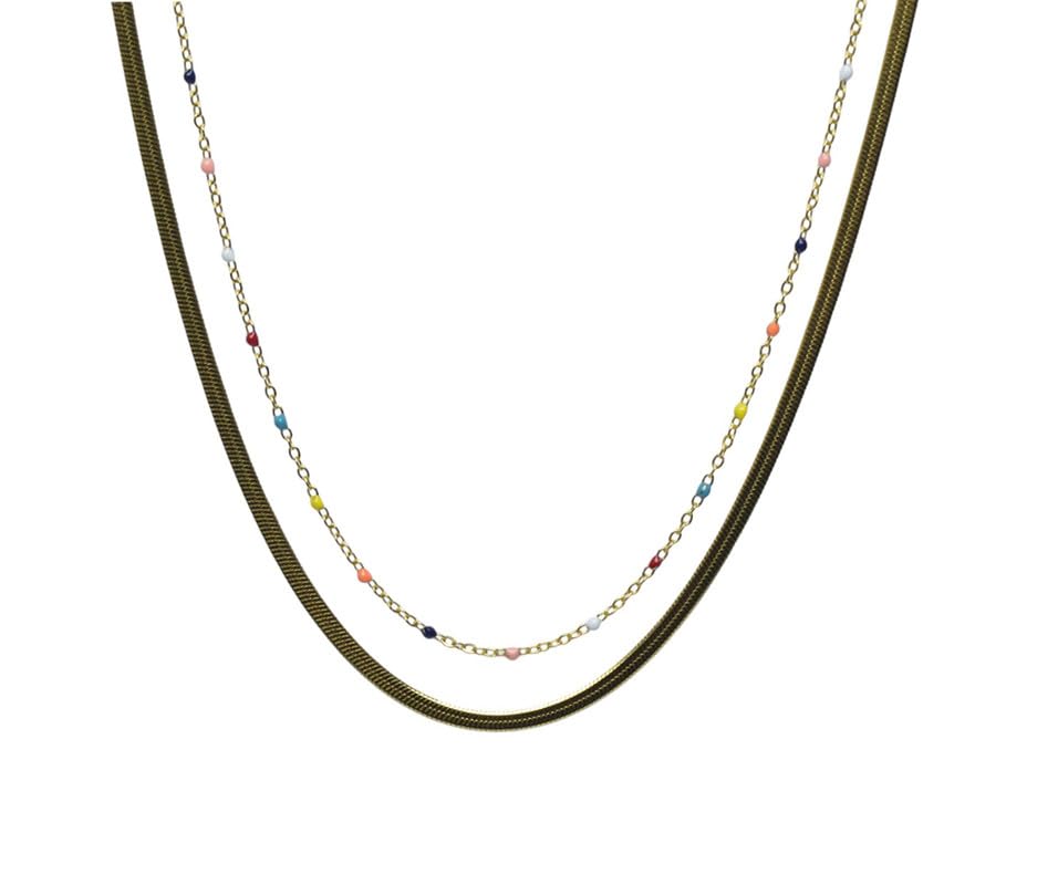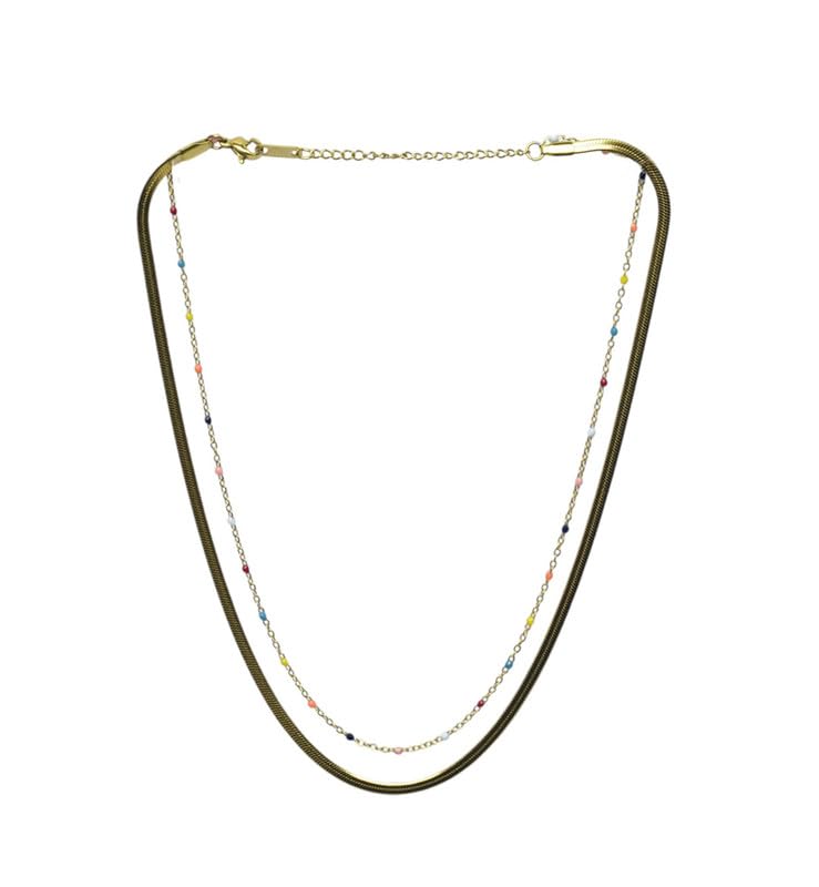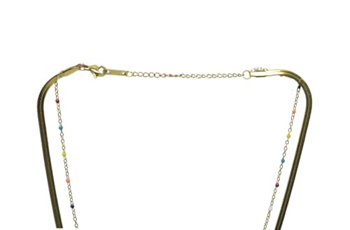 Generic - عقد توينز من الستانلس ستيل مع سلسلة ثعبان مسطحة وتصميم كرات للبنات - متعدد الالوان