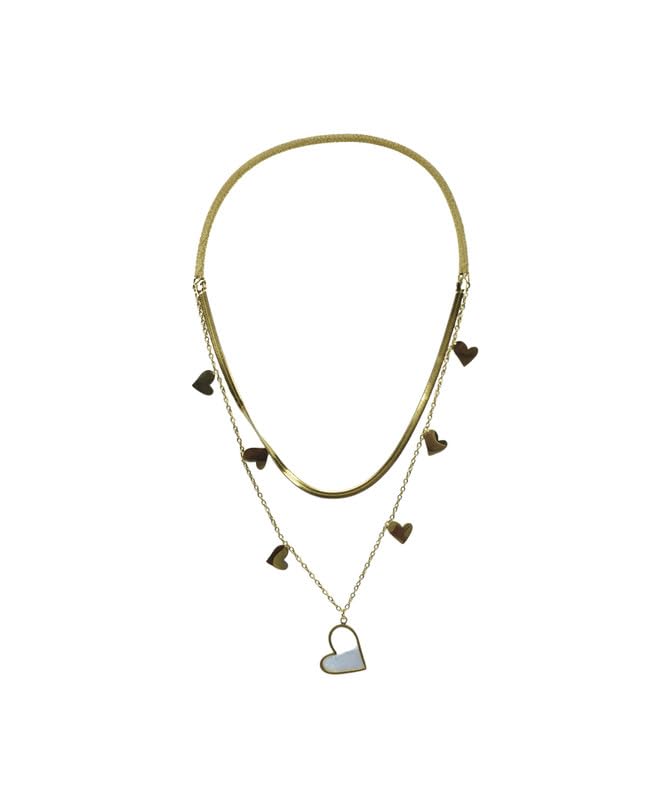 Generic - عقد توأم من الستانلس ستيل بتصميم قلب للبنات - ذهبي وابيض