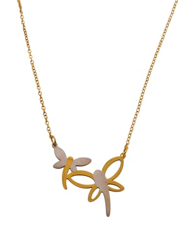 Generic - Stainless Steel Two Butterflies Pendant Necklace For Women - Gold