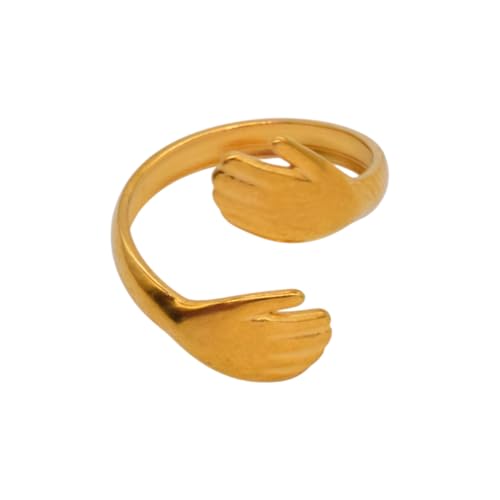Generic - خاتم للنساء من الستانلس ستيل بتصميم يدين، مقاس واحد - ذهبي