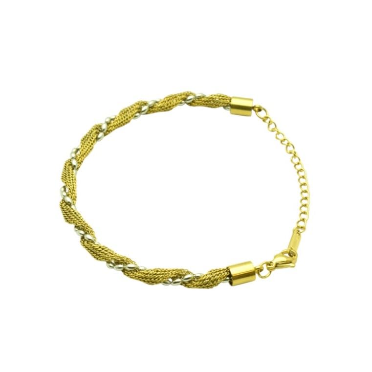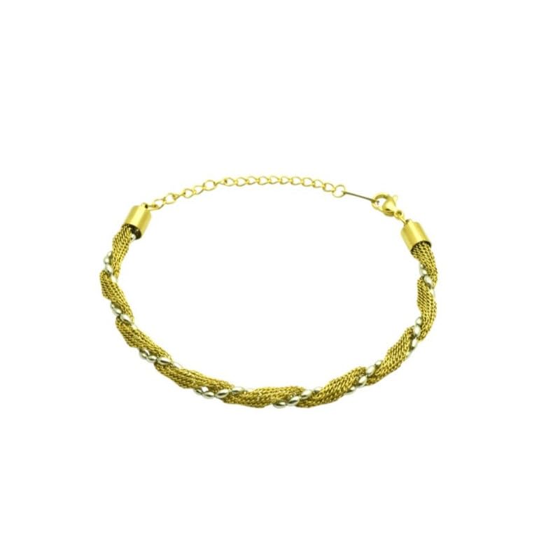 Generic - سوار سلسلة مضفر بلونين من الستانلس ستيل للنساء - ذهبي