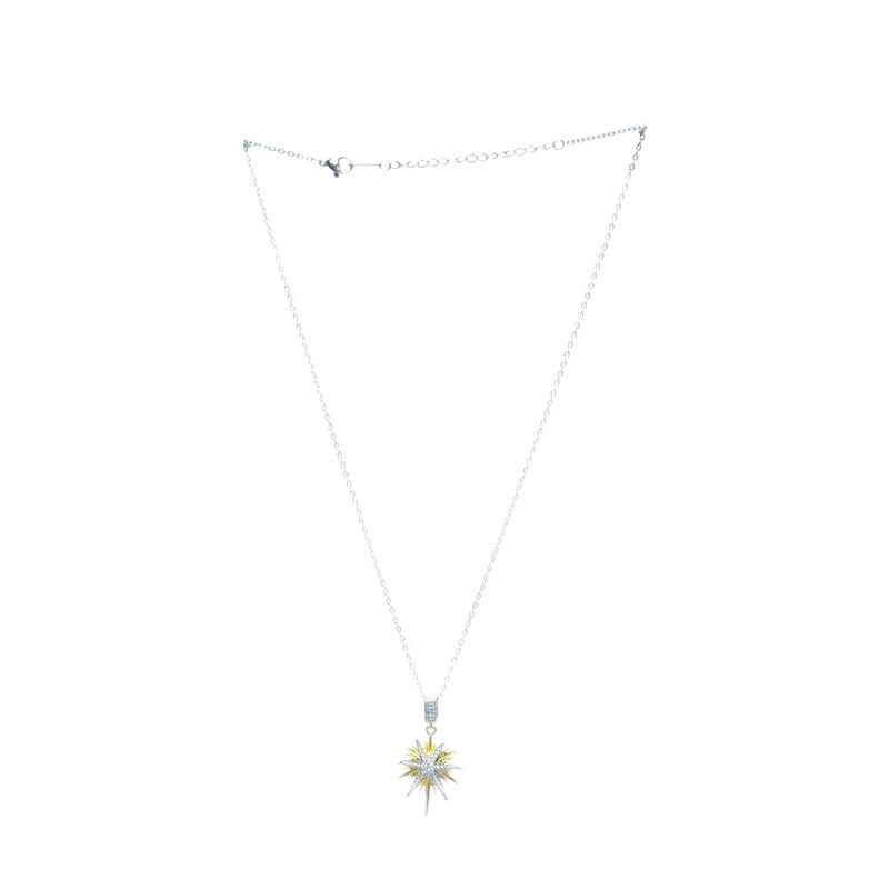 Generic - Stainless Steel Two-Tone Dimensional Starburst Pendant Necklace For Women - Silver Gold