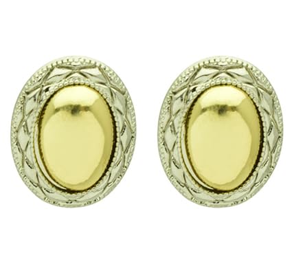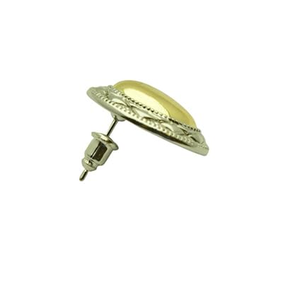 Generic - Stainless Steel Two-Tone Oval Stud Earrings for Women – Gold Silver
