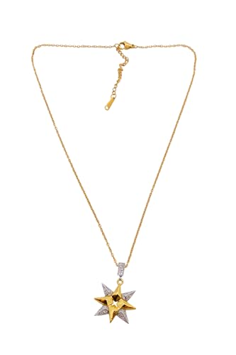 Generic - Stainless Steel Two-Tone Spiked Star Pendant Necklace For Women - Gold