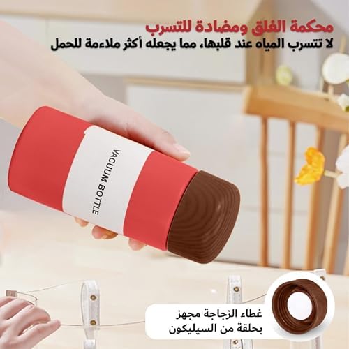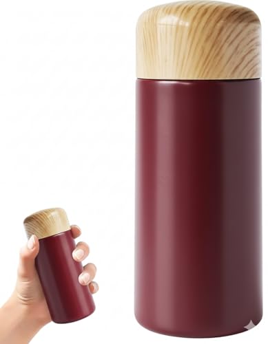 Generic - Stainless Steel Vacuum Bottle, 150ml/250ml, Portable Thermal Flask with Wood-Grain Lid, Leak-Proof, Hot & Cold Drink Travel Mug choose your (Burgundy, 150mm)