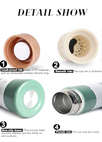 Generic - Stainless Steel Vacuum Bottle, 150ml/250ml, Portable Thermal Flask with Wood-Grain Lid, Leak-Proof, Hot & Cold Drink Travel Mug choose your (Mint Green, 150mm)
