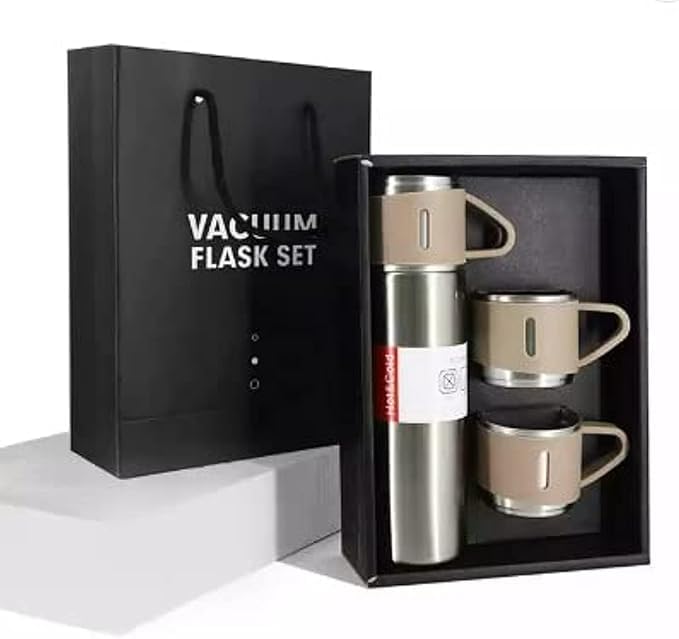 - Vacuum-Insulated Set: This set includes a 500ml vacuum flask and 3 stainless steel cups, designed to keep your beverages hot or cold for extended periods.
