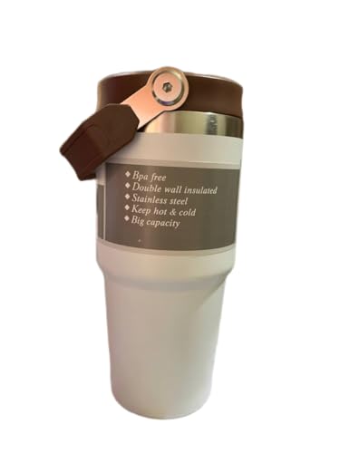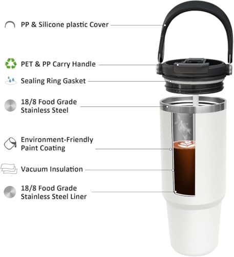 Generic - مج سفر معزول بتفريغ الهواء من الفولاذ المقاوم للصدأ، غطاء بثلاثة اتجاهات وهيكل مزدوج الجدار وخالي من مادة بيسفينول أ، ومناسب للمشروبات الساخنة والباردة، لون أبيض