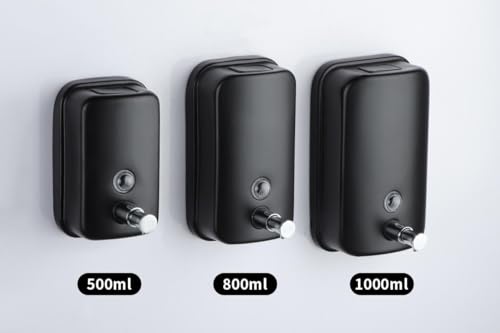 Generic - موزع صابون سائل بتثبيت للحائط من الستانلس ستيل - احجام وسعات مختلفة حسب اختيارك (اسود, 500 ملى)