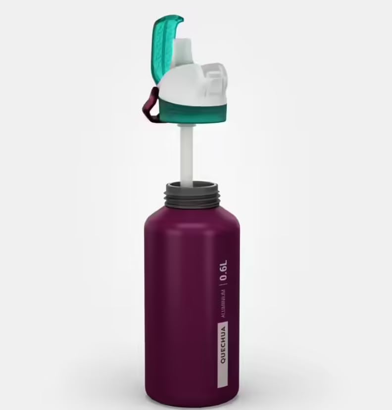 Generic - Stainless Steel Water Bottle, 0.6L, Purple, Quick-Open Lid with Green Cap 0.6 L kids’ alum. water flask 500 with instant cap, pipette & straw, for hiking