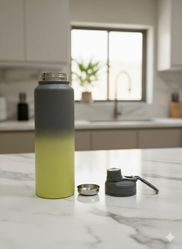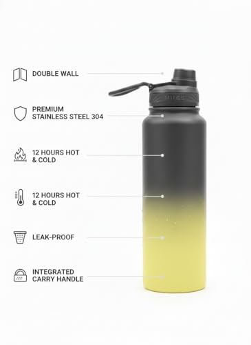 Generic - زجاجة مياه من الفولاذ المقاوم للصدأ، سعة 1000 مل، قارورة معزولة بتفريغ الهواء بجدار مزدوج، ساخنة وباردة مع مصفاة شاي (اصفر ورمادي)