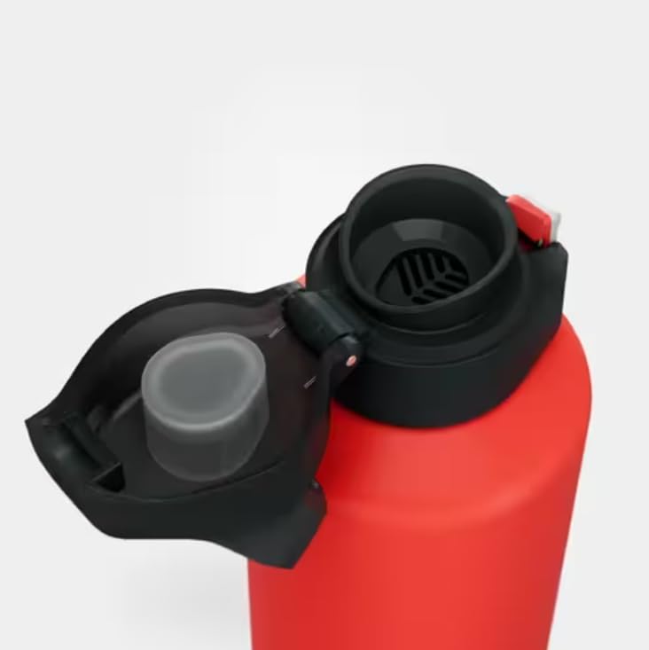 Generic - زجاجة مياه من الفولاذ المقاوم للصدأ، ترمس حراري رياضي معزول من الألومنيوم 500 مل مع غطاء أسود سريع الفتح ومناسبة للمشي مسافات طويلة، 1 لتر، أحمر