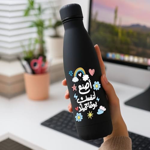 Generic - Stainless Steel Water Bottle, 500ml, Thermal Flask with motivational Design, Leak Proof, 6-Hour Temperature Retention, Black, Waterproof sticker, اصنع لنفسك يوما جميلا