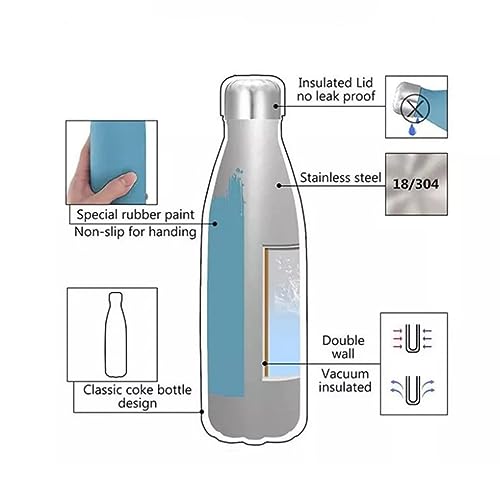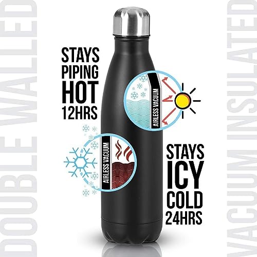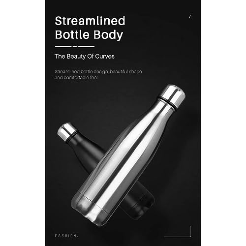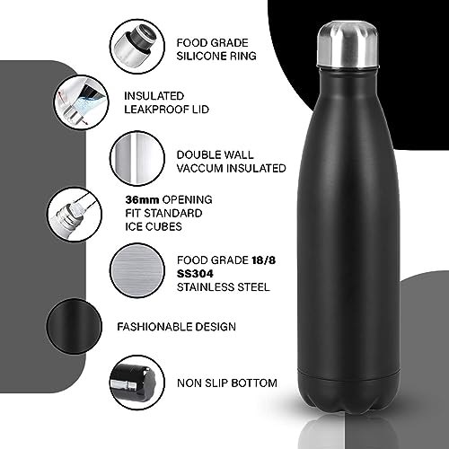 Spaceshoop - Stainless Steel Water Bottle, Double Wall Vacuum Insulated Cola Bottle, Leakproof Reusable Sports Water Bottle Keeps Drinks Cold for 24 Hrs/Hot for 12 Hrs Black (500ml)