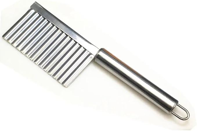 Generic - قطاعة بطاطس مموجة من الستانلس ستيل - سكين تقطيع مجعد للبطاطس المقلية والخضروات ورقائق البطاطس والفواكه - مقبض غير قابل للانزلاق، شفرة مقاومة للصدأ لسهولة التقطيع - اداة مطبخ للطعام الانيق