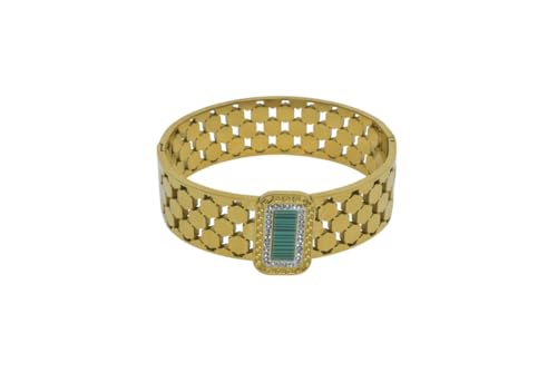 Generic - سوار عريض من الستانلس ستيل مع حجر اخضر وتصميم خلية النحل للنساء - ذهبي