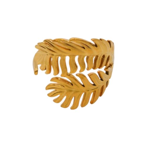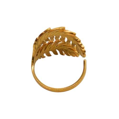 Generic - Stainless Steel Wide Frond Design Women's Ring, Free Size - Gold