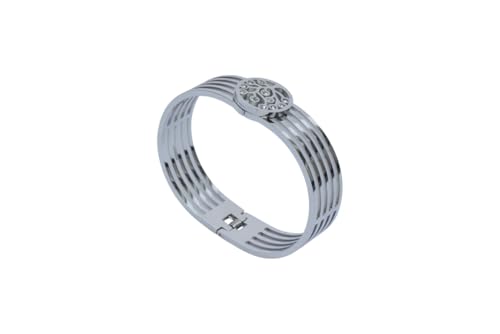 Generic - Stainless Steel Wide Multi-Band Bangle with Tree of Life Medallion for Women - Silver