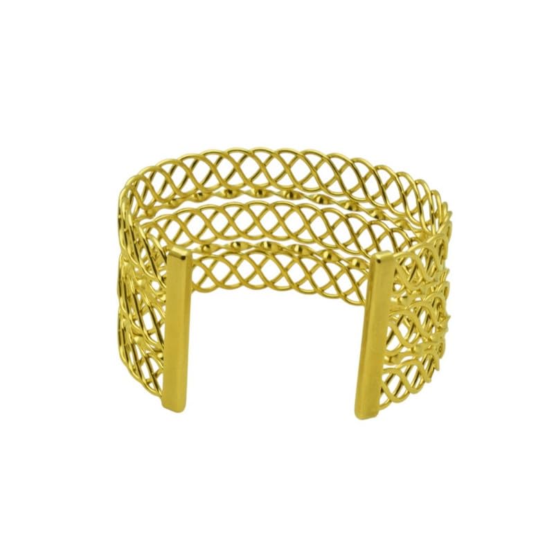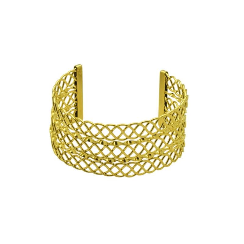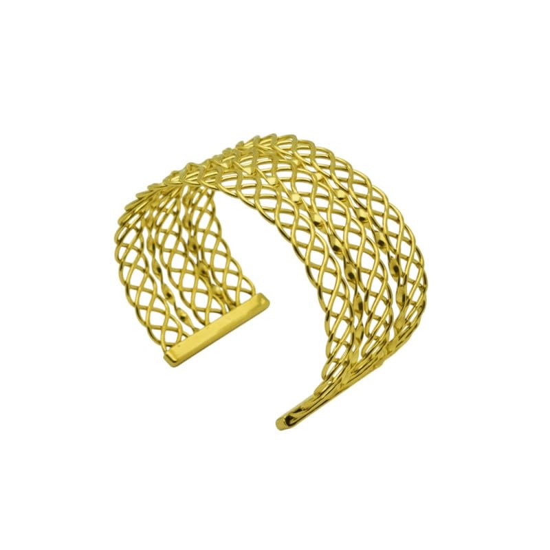 Generic - سوار عريض من الستانلس ستيل بتصميم شبكي مفتوح للنساء - ذهبي