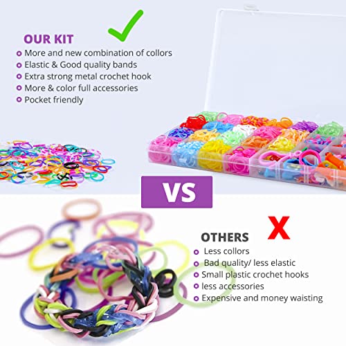 STALEU - مجموعة صنع اساور الصداقة مكونة من 1800 قطعة 31 لون مع خطاف كروشيه معدني 3.5 ملم و202 ملحق في صندوق تخزين للاطفال وهدايا الكريسماس عيد الميلاد للبنات ستليو