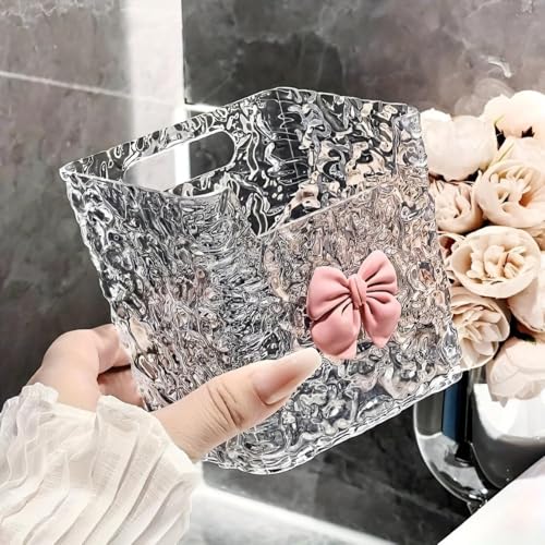 - This transparent multipurpose organizer with an elegant bow detail offers versatile storage options for your essentials, whether you need a holder for TV remotes, makeup brushes, cosmetics, toothbrushes, toothpaste, or even pens. It provides one simple solution for multiple needs, saving you from clutter while enhancing both practicality and style in any room of the house.