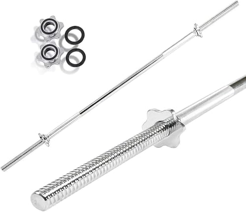 Generic - Standard Chrome Barbell Bar with Threaded Ends & Spring Collars – Steel Weightlifting Bar for Home Gym, Strength Training & Bench Press