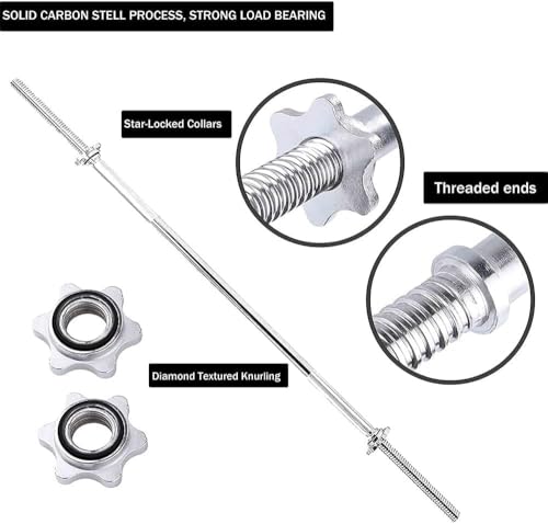 - 🔩 Secure Threaded Ends – Features threaded ends with star lock collars for a tight, wobble-free grip on standard 1-inch weight plates.