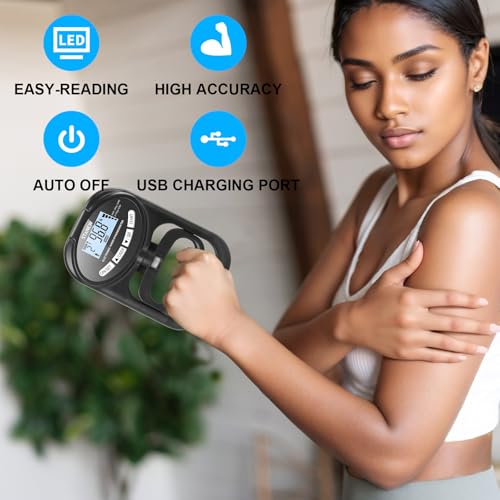 - HIGH ACCURACY: Digital Hand Dynamometer Grip Strength Measurement Meter Equipped with an ultra-high accuracy transducer, accurate instantaneous digital readings. Measures forces up to 120KG/265Ibs; Accuracy up to: 0.2 lbs/0.1 KG