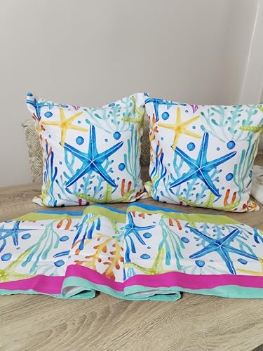 - Coastal Design: stylish starfish pattern with bright colors of blue and yellow, brings the sea atmosphere to your bedroom