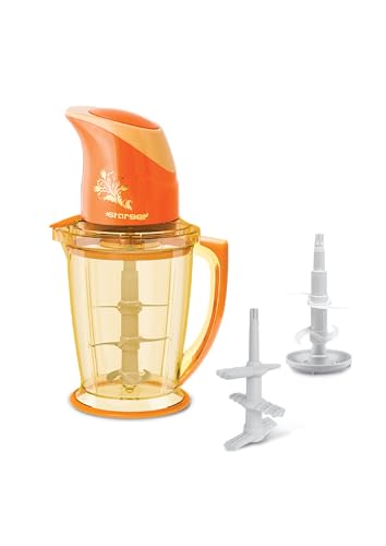 Starget - Starget Meat Kibbeh with Anti-Break Bowl 2L - 800W - 6 Stainless Blades Top Material Column for Hardness Strength - Attachment Garlic Peeler Turbo 4 Whisk Chopper Orange