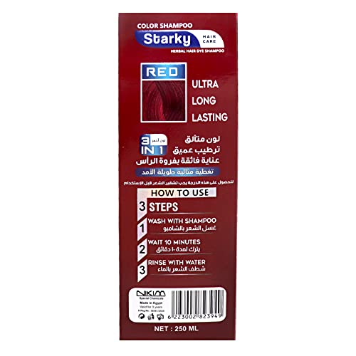 Starky - شامبو هيربال هير داي 3 في 1 للترطيب والعناية بصحة فروة الرأس يدوم طويلا للشعر الطويل للغاية (R30)، احمر لامع، 250 مل من ستاركي