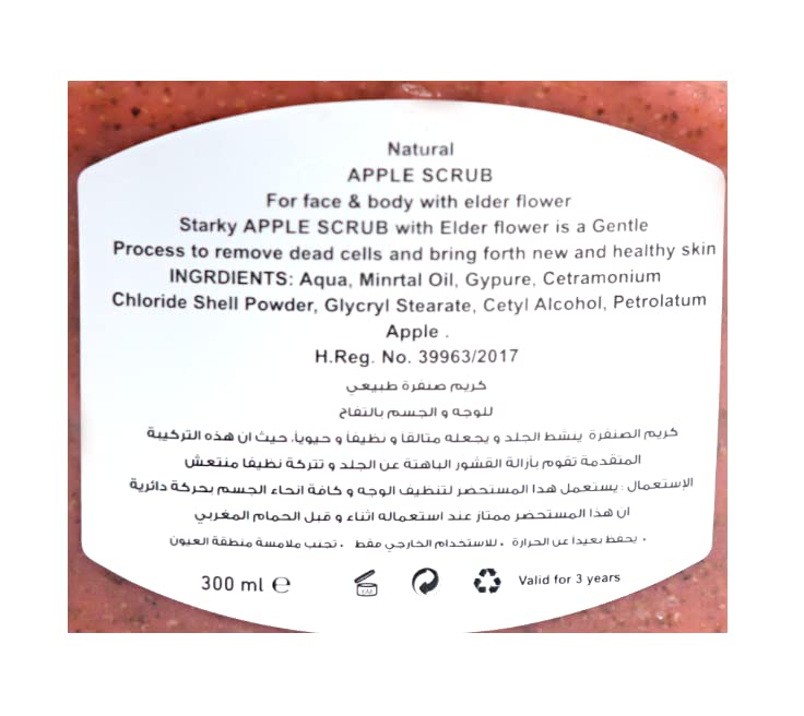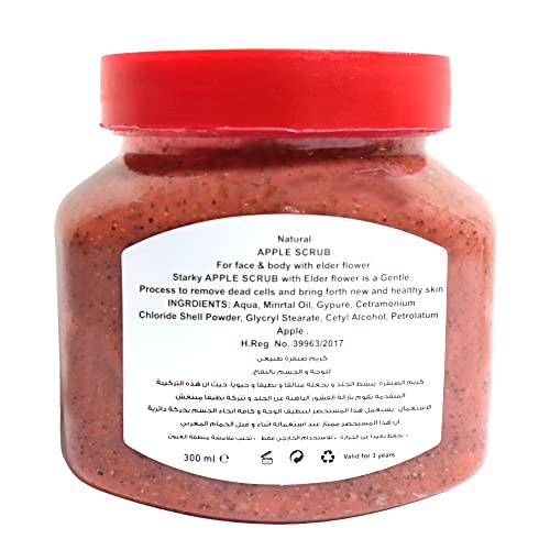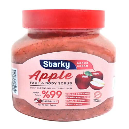 Starky - كريم صنفرة للوجه والجسم للتنظيف العميق وتفتيح البشرة بخلاصة التفاح لجميع أنواع البشرة من ستاركي، 300 مل