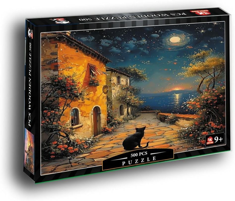 - Starry Night Cat - 500 Pcs Wooden Jigsaw Puzzle