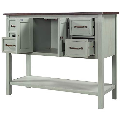 STARTOGOO - ترابيزة جانبية للبوفيه مع أدراج تخزين ورف سفلي لغرفة المعيشة والمطبخ والمدخل والممر من ستارتوجو، ريترو جرين، خشب