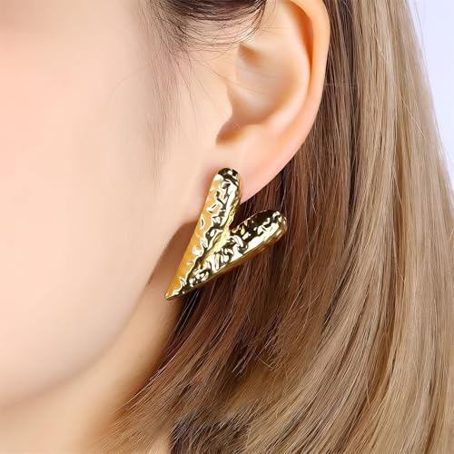 Generic - Statement Gold Earrings - Large Geometric Chunky Earrings in Gold Plated Finish for a Modern Elegant Look