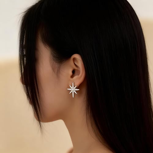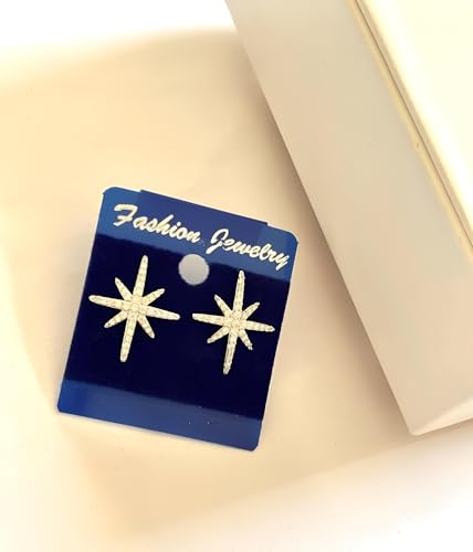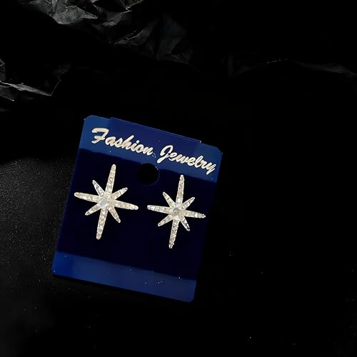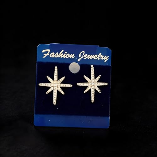 Generic - Statement Jewelry - Gold Star Earrings with Unique Double Starburst Drop and Pave Set Cubic Zirconia Ideal for Great Gift Moments