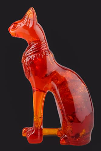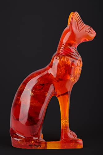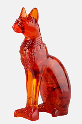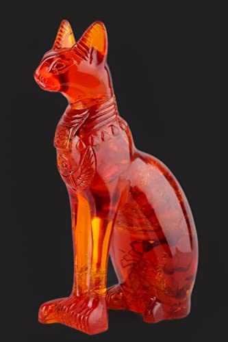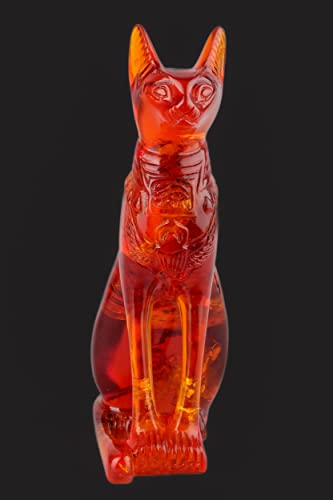 Generic - تمثال قطة الالهة المصرية باستيت بتصميم عتيق - قطة للديكور المنزلي بنمط فرعوني بلون كهرماني مغبر، صنع في مصر