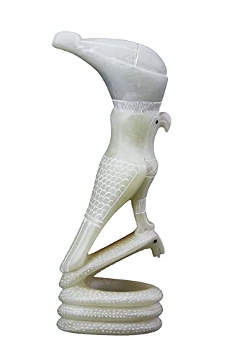 Generic - تمثال لإله حورس تمثال طائر الصقر يقف على حجر صابون منحوت يدويًا من كوبرا صنع في مصر. كان حورس إله السماء في الديانة المصرية القديمة.، بيج داكن / تان