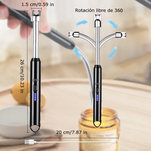 - ★360° ROTATING FLEXIBLE NECK: Our arc lighter can rotate 360° in the direction of bending and rotating to any angle you need, which can meet different angles of the product and thus set fire faster. It is very convenient whether you use it outdoors or indoors.