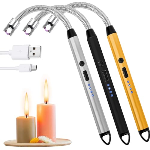 STAYOUNG - STAYOUNG 3 Pieces Electric Lighter – USB Rechargeable with LED Battery Display, Flexible Neck and 360 Degree Rotation, Flameless, Windproof, Safe