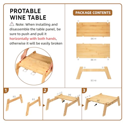 - Easy & Tool-Free Setup:Guided by a detailed instruction, you can quickly learn how to assemble two panels into a camping table. All you need to do is simply assemble the wine table board by hand and fix it in