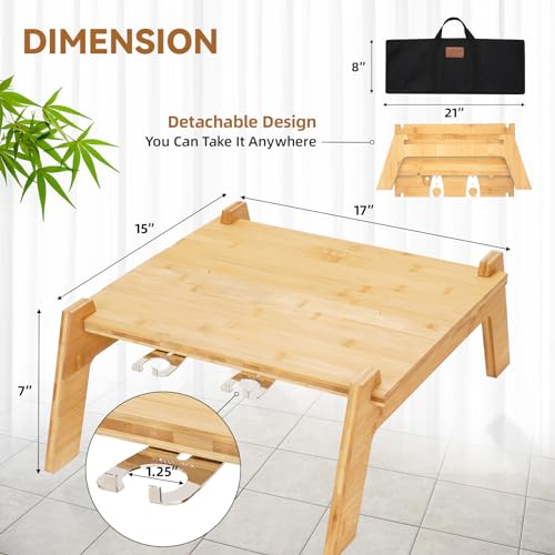 STBoo - STBoo Outdoor Picnic Table - 7" Low Height Floor Coffee Table | Small Patio Dining Table with Bottle Opener, Heavy Duty Bamboo Folding Table with Bag for Beach BBQ Party Camping Garden, 17×15x7inch