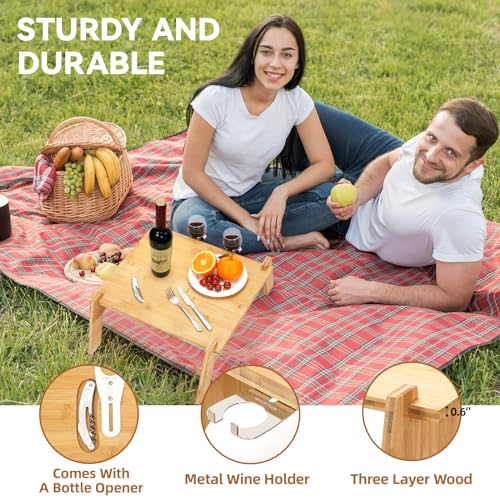 - Premium Bamboo Material: The floor table is built with 3 layers of premium bamboo for extra strength,and is easy to clean,it is coated with a food-safe finish no dying,made by special vertical pressure craft, sturdy, uniform, beautiful natural color, ensure safety for your picnic.