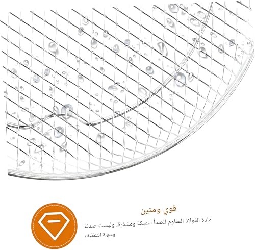 - مصمم ليدوم طويلاً، يستخدم الرف الستانلس ستيل 304 الآمن غذائيًا مع أسلاك ملحومة للقوة، مصمم لمقاومة الاعوجاج أو الانحناء بمرور الوقت؛ آمن للاستخدام طويل الأمد في الفرن والمقلاة الهوائية، وسهل التنظيف للحفاظ على بيئة طهي صحية لعائلتك.