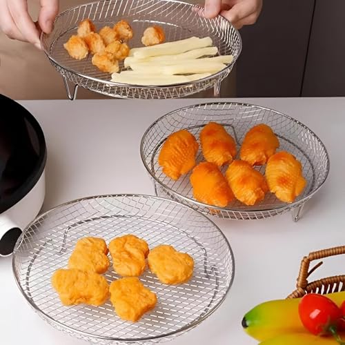 Generic - رف طهي ستيم اند كول متعدد الاستخدامات للمقالي الهوائية، مصنوع من الفولاذ المقاوم للصدأ بتصميم دائري لتجفيف الأطباق الساخنة بالبخار وتبريدها دون الالتصاق أو التكتل
