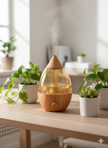 DOMA - فواحة بخار وجهاز مرطب هواء وناشر عطر كهربائي، تصميم قطرة الماء، (خشبي, 2.5 لتر)