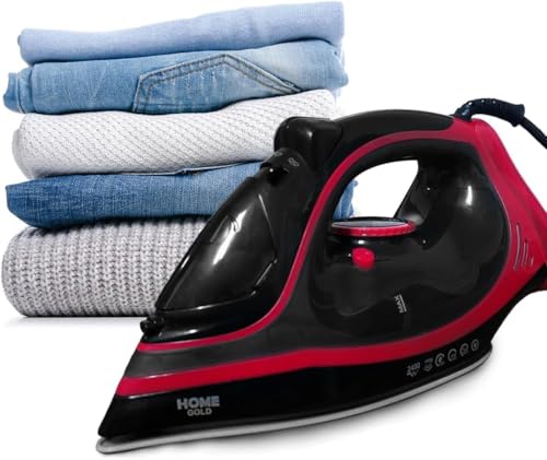 Generic - مكواة بخار من هوم جولد للكي بدون مجهود مع تسخين سريع وأوضاع مزدوجة وميزات أمان متقدمة - قدرة 2600 وات، طلاء سيراميك، وتحكم متغير في البخار، HG-803 (أحمر)